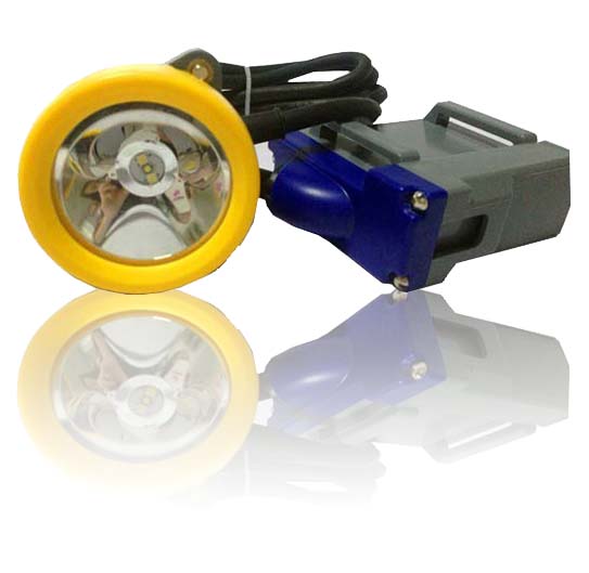 GLT-7C cord miner cap lamp uses CREE 3W high power white led as main light, 2pcs 0.5W SMD leds as the auxiliary lights,and designed with high capacity 6.6Ah rechargeable Li-ion battery.